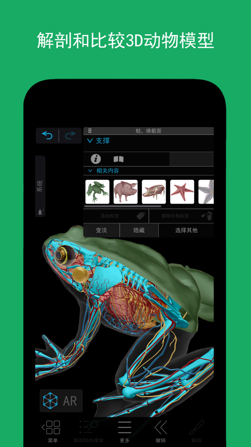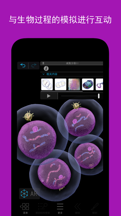 2. 互动模式:在3D模型中,用户可以通过触摸屏幕旋转、缩放、平移模型,从多个角度观察生物结构。
