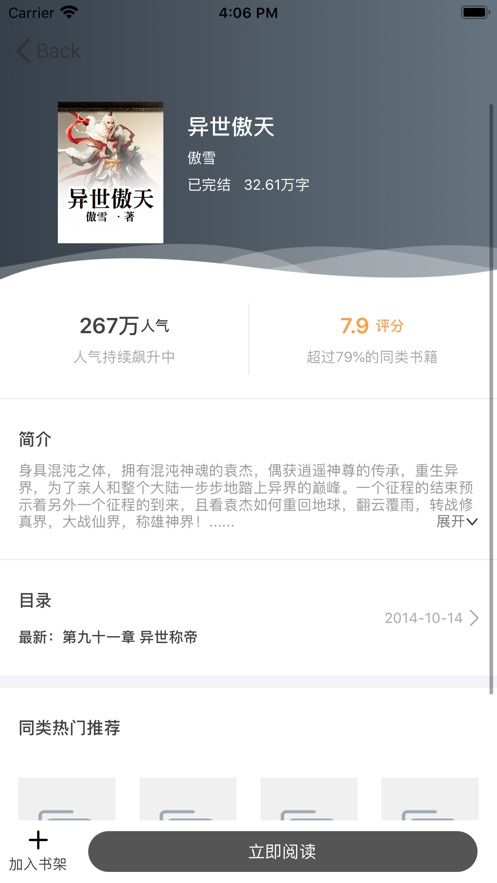 2、每天的热门榜单和高分榜单在线更新可以来线上进行,选择查找你感兴趣的书籍,还能够保存到你的书架中,方便下一次阅读。