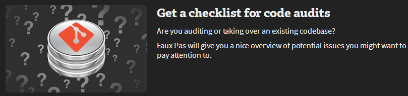 你审查或者接管现有的代码库吗?针对你可能想关注的问题,Faux Pas将会给你一个很好内容概览。