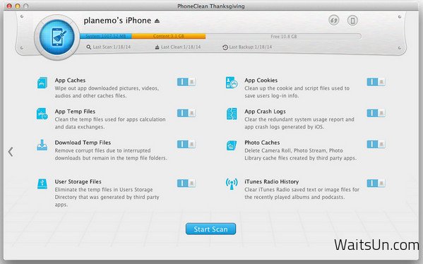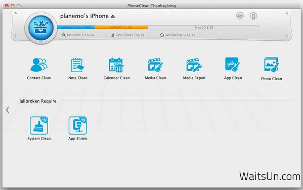 PhoneClean Mac版是Mac OS平台上一款为iPhone,iPad清理垃圾软件的工具,需要安装iTunes 支持。PhoneClean 它能帮你清理应用程序缓存、cookies、离线数据文件,清理临时文件并回收可用空间。如果你感觉iPhone,iPad越来越慢,可以试试phoneclean 清理释放空间。