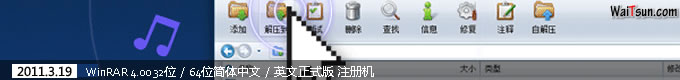 现在国内的压缩软件选择的余地很多,7-zip,haozip,360压缩,还是炒作过今天的百度压缩,爱情本人一直使用的WinRAR终于在最近更新到了4.0正式版,并且于今日官方更新了中文,相信不久4.0正式版的集成破解版本马上就会出来,爱情在这里先共享一下注册机,给那些和爱情一样喜欢WinRAR的盆友,软件介绍就不多说了,人人都知道这是干神马用滴。