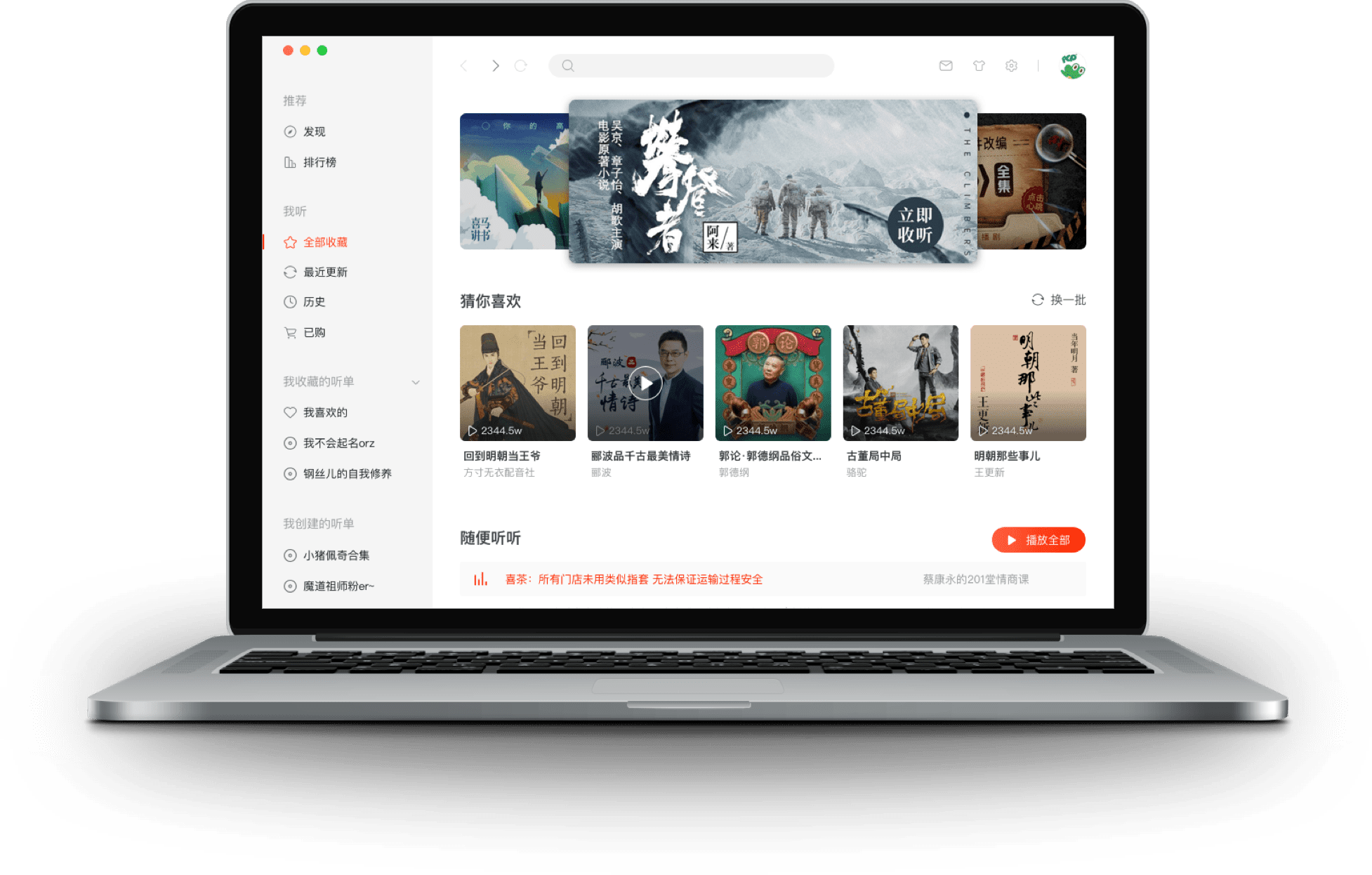 喜马拉雅是知名音频分享平台,它是一款非常火的随身听软件喜马拉雅fm电脑版,喜马拉雅电脑版这里有全中国最大的声音库,喜马拉雅fm电脑版拥有各种有声小说、综艺节目、音乐、相声、小品、童话故事等等一应俱全。