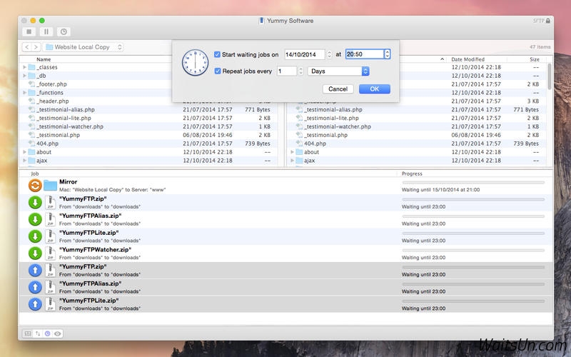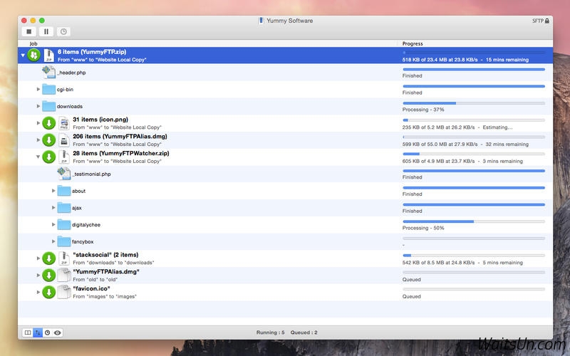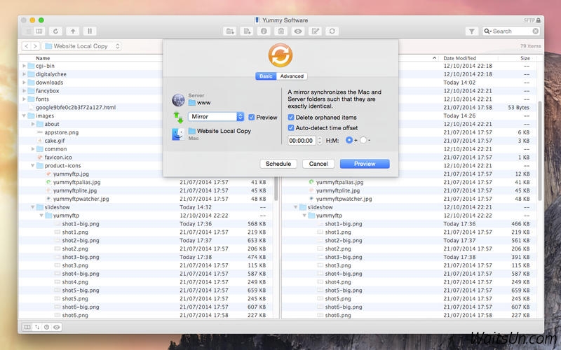 应网友要求更新。Yummy FTP 是一款Mac上优秀的FTP文件传输工具,支持FTP / FTPS/ SFTP协议,简单易用,传输速度很快,支持目录同步、计划任务、带宽限制等等高级功能,相比免费的FileZilla有这个软件独特的优点!